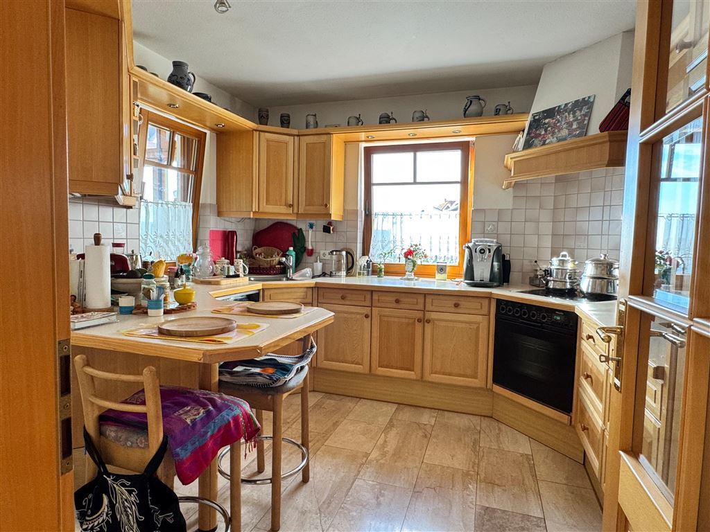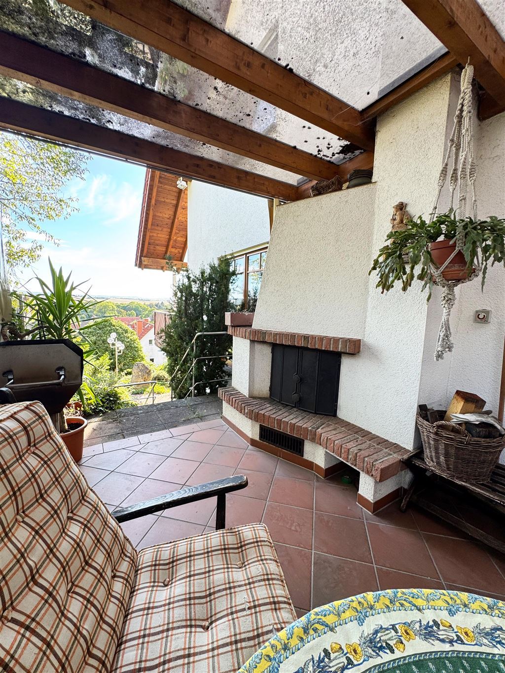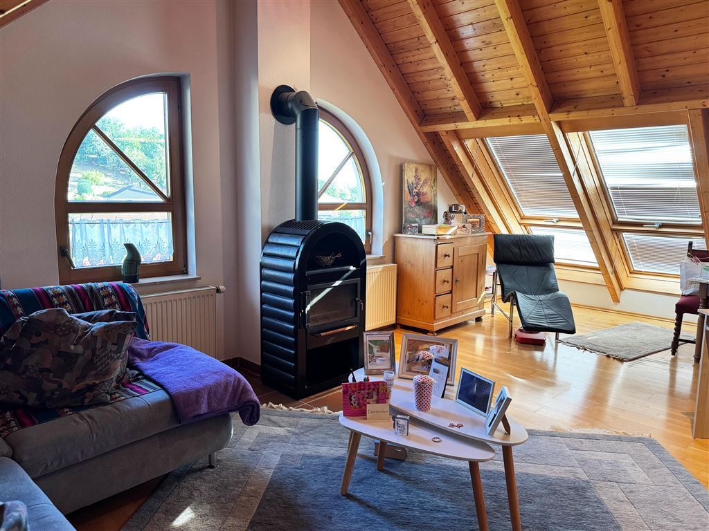 Das Haupthaus erstreckt sich über drei Stockwerke mit insgesamt ca. 156,22 qm. Im großzügigen Wohn- und Essbereich mit angrenzender Küche genießen Sie einen Panoramablick der Terrasse und den gemütlichen Wintergarten hinaus. Vom Wohnzimmer aus gelangen Sie direkt in den Garten. Zwei Kaminöfen – einer im Wohnbereich und einer im Vorplatz zum Garten – sorgen für behagliche Wärme, ergänzt durch eine Fußbodenheizung auf diesem Stockwerk. Ein Tageslichtbad mit Dusche, zwei Abstellräume und ein Kaltkeller, der in den Hang hinein gebaut ist, bieten praktischen Stauraum und Kühlmöglichkeiten. Im darüberliegenden Stockwerk befinden sich zwei Schlafzimmer sowie ein Tageslichtbad mit Wanne und Dusche. Ein sonniger Balkon ist sowohl vom Bad als auch von einem Schlafzimmer begehbar. Über den Flur erreichen Sie die Garage. Ein Stockwerk darüber erwartet Sie ein großzügiges Dachstudio mit Kaminofen – ein Ort zum Entspannen, für kreative Ideen oder als Arbeitszone, mit weiteren Blicken über die Umgebung.