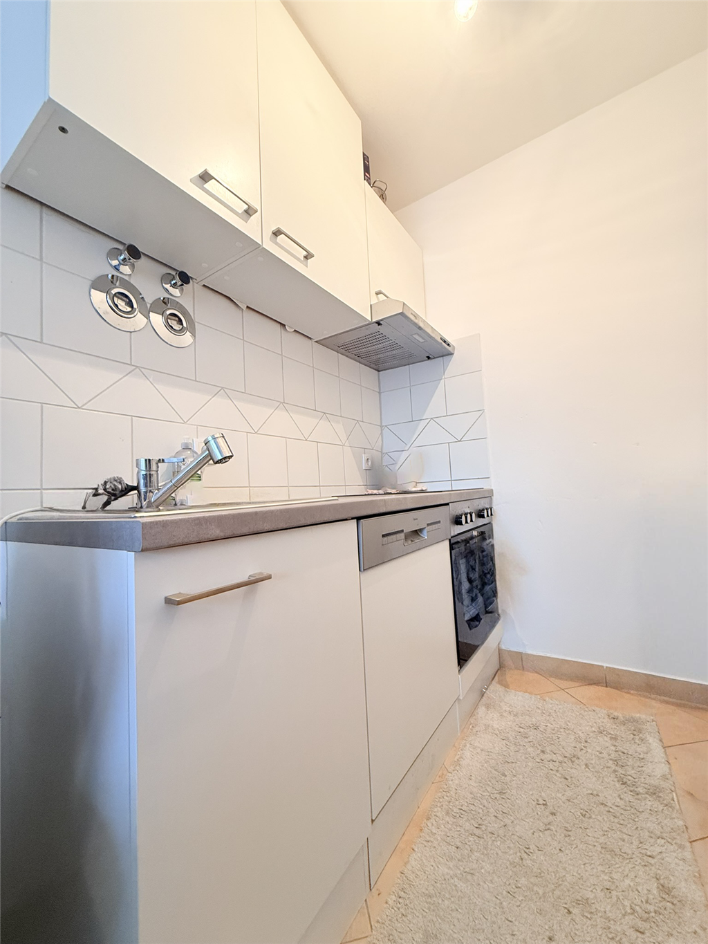 Die Wohnung verfügt über eine Loggia und eine Küche mit moderner Einbauküche, inklusive Elektrogeräte (Herd mit Ceran/Induktion, Backofen, Spülmaschine und Abzugshaube). Zusätzlich gibt es ein Badezimmer mit Dusche, WC und Handwaschbecken. Im Keller finden Sie ein Wasch-/Trockenraum sowie ein Spint der Ihnen als Lagerfläche dient.