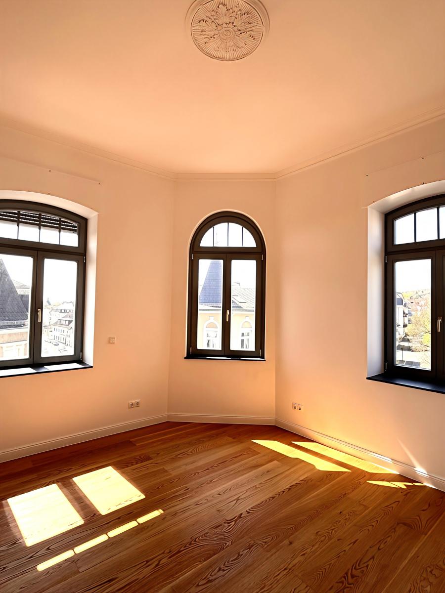 Die Maisonette-Wohnung erstreckt sich über das 2. und 3. Obergeschoss und bietet insgesamt sieben großzügige Zimmer sowie zwei Balkone. Zwei Badezimmer, darunter ein Masterbad mit ebenerdiger Dusche und Badewanne, sowie ein separates Gäste-WC sorgen für hohen Wohnkomfort.