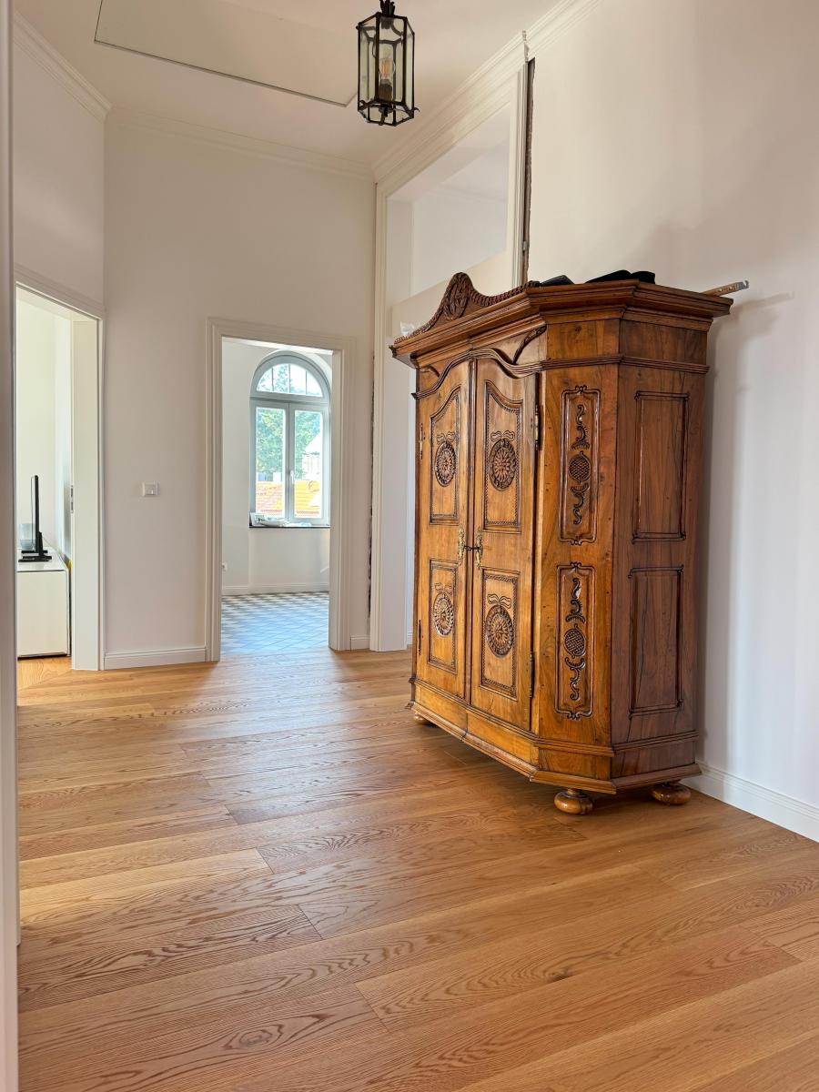 Das denkmalgeschützte Gebäude bewahrt seine historische Seele und wurde zugleich mit viel Liebe zum Detail in die Gegenwart geführt – eine seltene Symbiose aus Geschichte und Moderne.